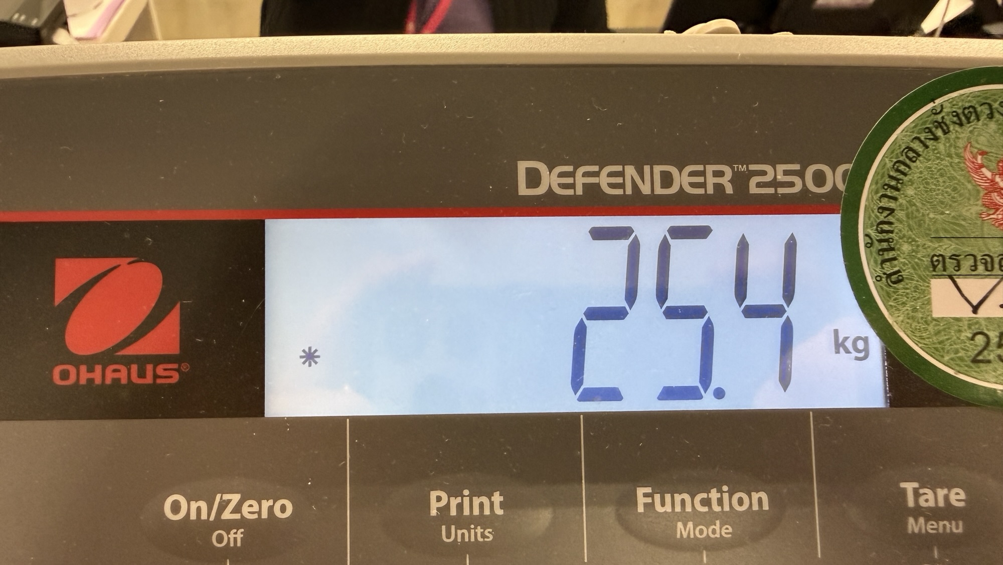 25キロより0.4グラムオーバーしてるけどこれぐらいはお目こぼししてくれるだろうと思ってたら無料枠は23キロであったことが発覚。